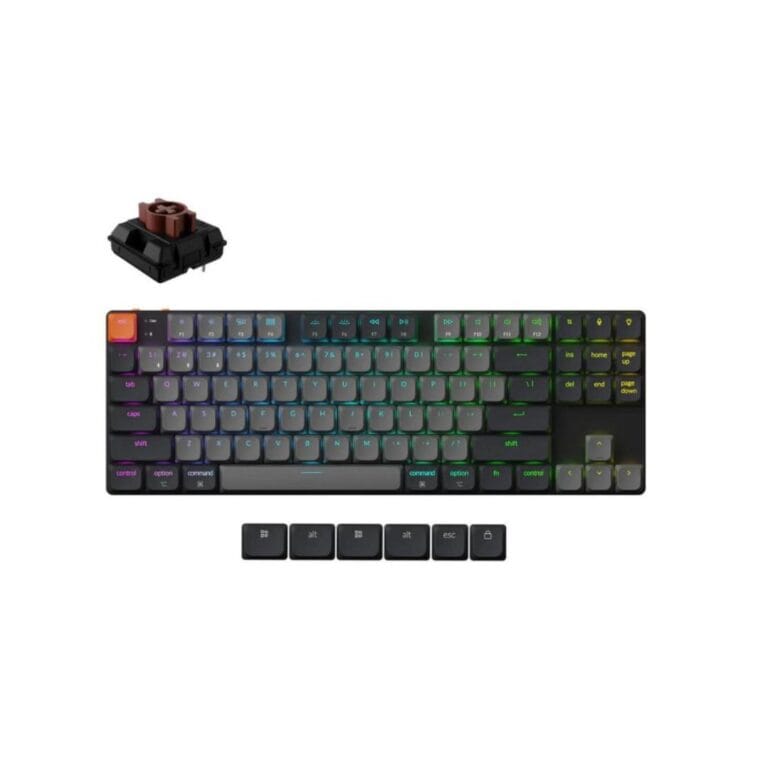 99,00 € su PVMYpač plona belaidė mechaninė klaviatūra su 80% TKL išdėstymu, QMK/VIA palaikymu, keičiamais (Hot-swappable) žemo profilio „Brown“ jungikliais ir RGB apšvietimu.