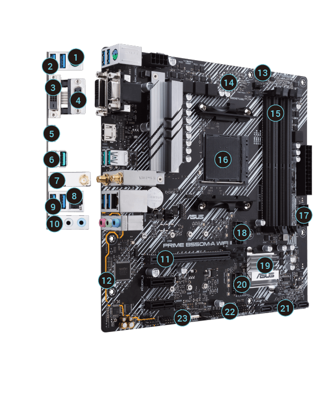ASUS Prime serija yra meistriškai sukurta tam, kad išnaudotų visą 5000, 5000 G, 4000 G ir 3000 serijos AMD Ryzen procesorių potencialą. Pasižyminti tvirta maitinimo konstrukcija, visapusiškais aušinimo sprendimais ir intelektualiomis derinimo parinktimis, PRIME B550M-A WIFI II pagrindinė plokštė suteikia kasdieniams vartotojams ir kompiuterių surinkėjams platų našumo optimizavimo galimybių spektrą per intuityvią programinę ir aparatinę įrangą.