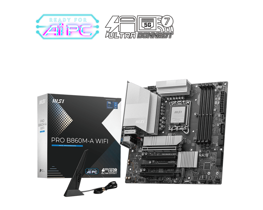 MSI PRO B860M-A WIFI mATX LGA 1851 PCIe 5.0 x16 & 4.0 x16, M.2 Gen5, Wi-Fi 7, 5G LAN MB