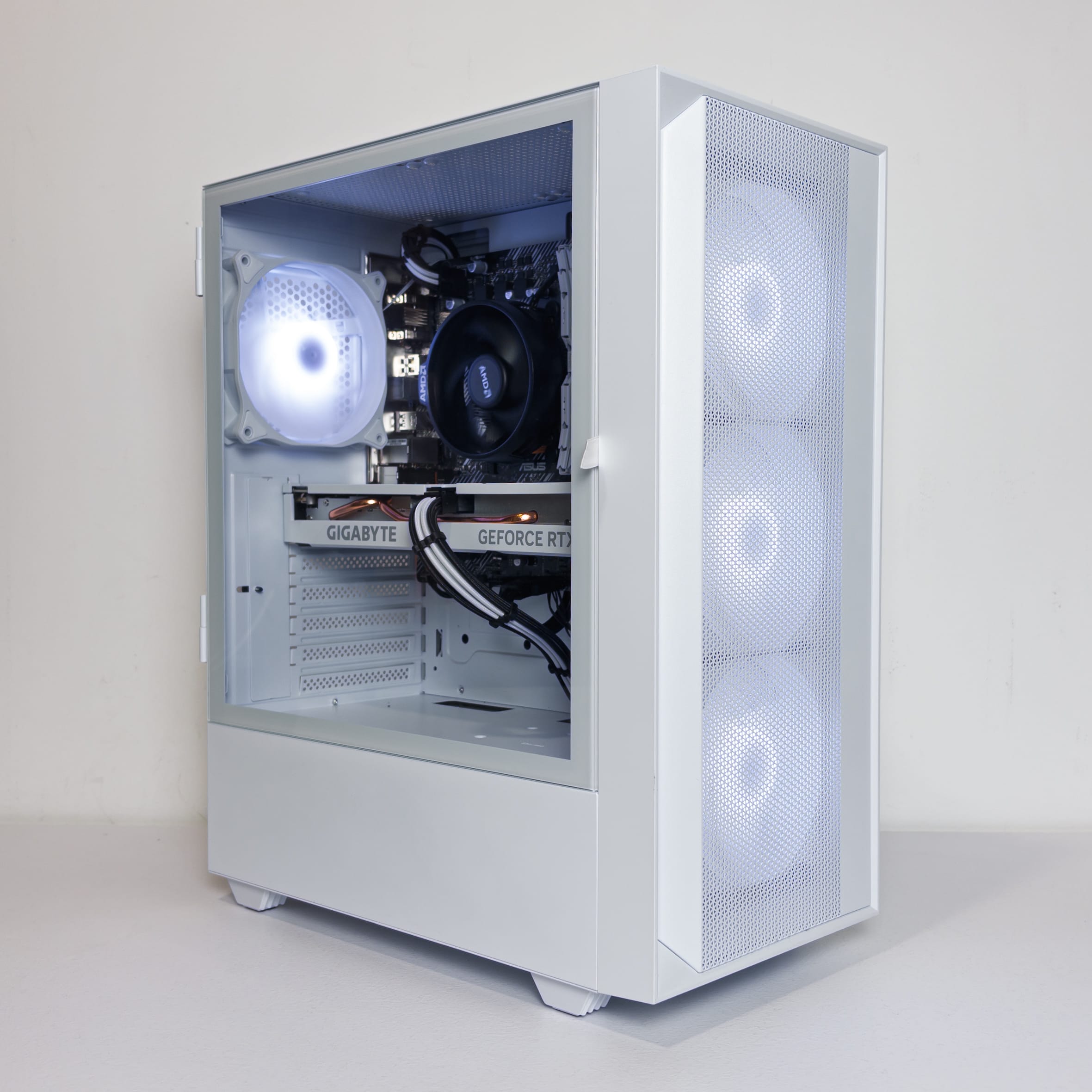 Baltas dizainas su ARGB apšvietimu ir gera oro cirkuliacija – puikiai dera prie „ICE / White“ stiliaus komponentų.